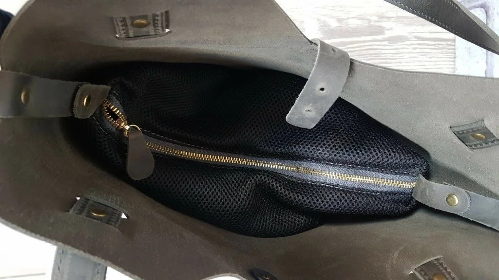 Вместительная сумка из натуральной кожи, внутри специальное