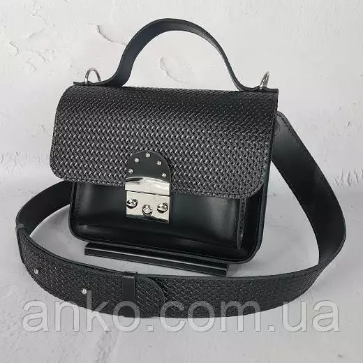 Сумка женская "Бианка" натуральная кожа, черная с плетенкой