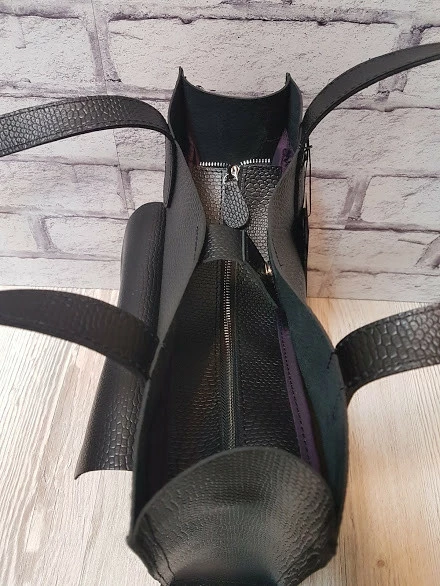 натуральной кожи. Сумка на подкладке, закрывается на молнию и на