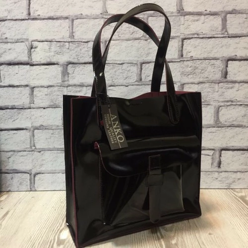 Сумка женская "ГАРДА" натуральная кожа, черная с изнанкой бургунди