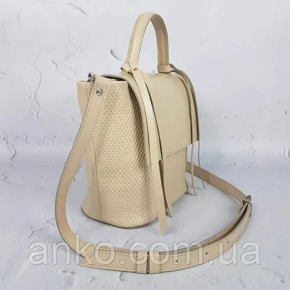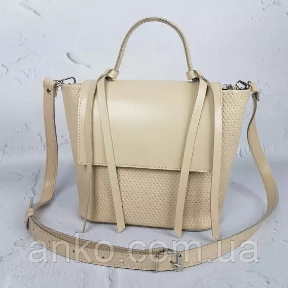 Сумка женская "Керри" натуральная кожа, слоновая кость с плетенкой