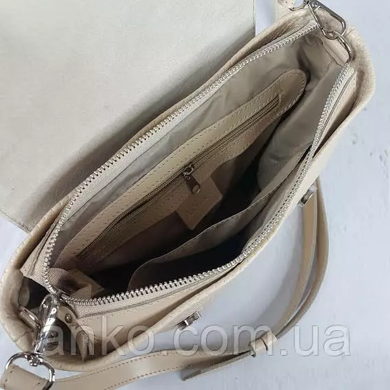 Сумка "Керри" изготовлена из натуральной кожи. Закрывается на молнию и под клапаном на два скрытых магнита, имеет одно центральное отделение, в котором есть карман на молнии и открытый карман для телефона. С тыльной стороны сумки имеется карман на молнии. Сумка на подкладке, плечевой ремень с регулировкой длины 125см, который крепится с помощью карабинов.