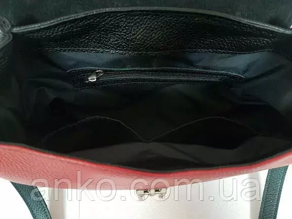 Сумка женская "Луна" натуральная кожа, красный с черным флотар