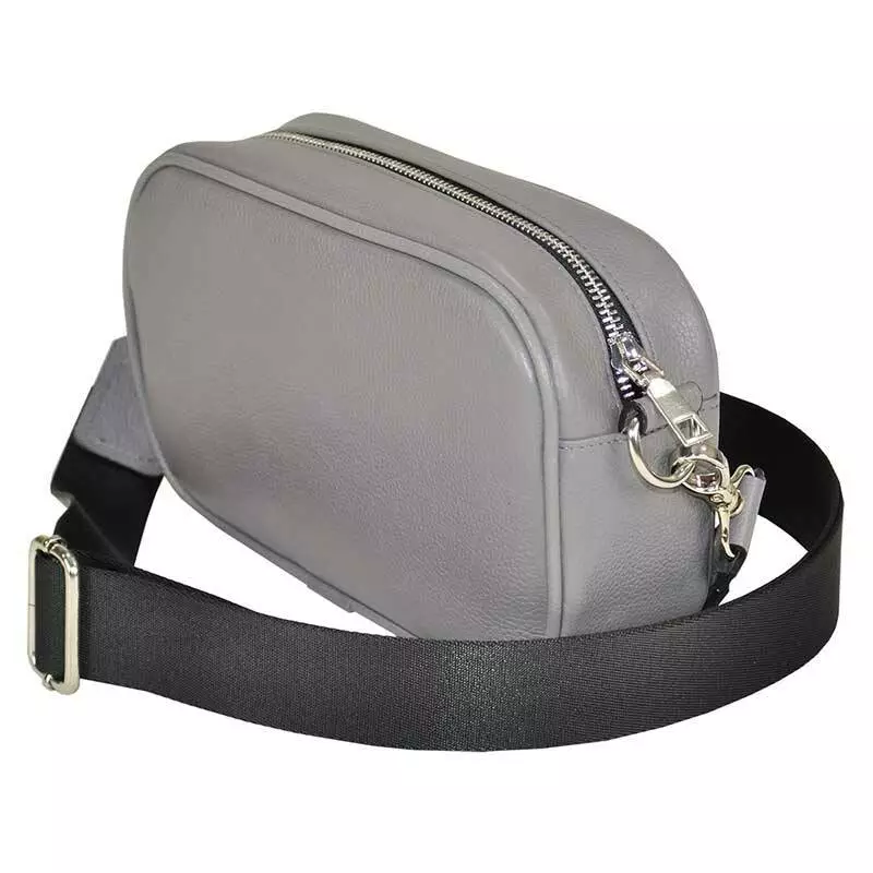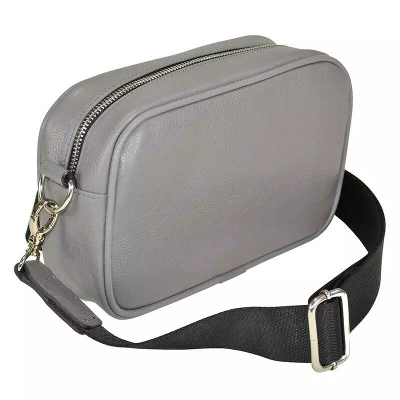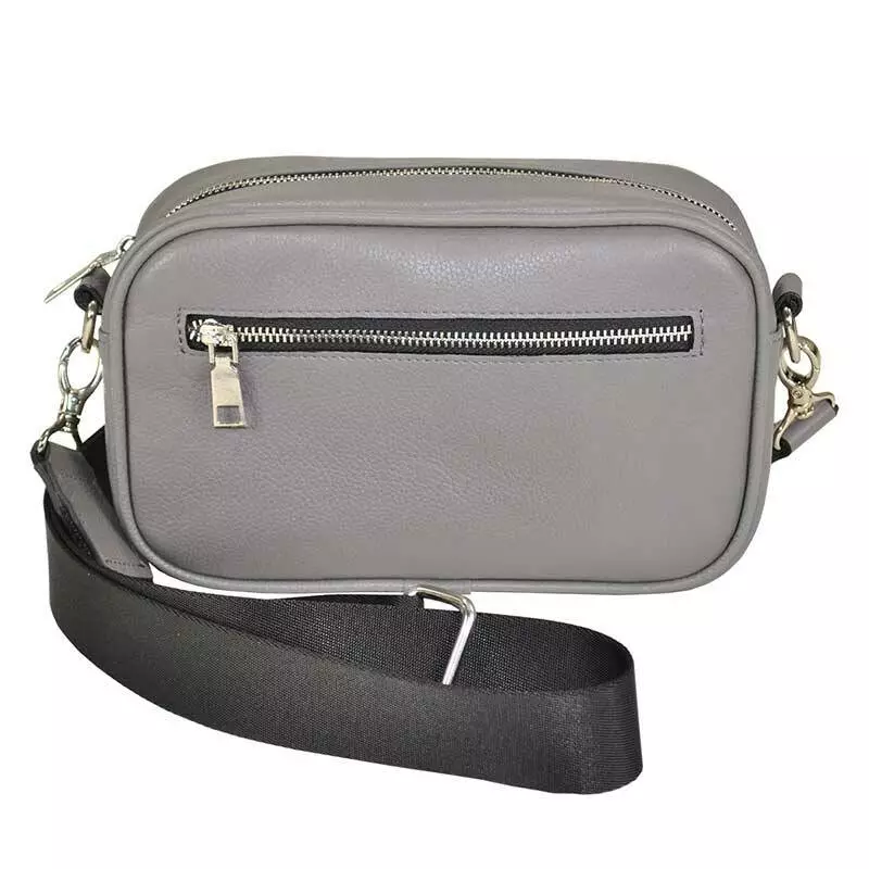 Жіноча сумка з натуральної шкіри флотар сірого кольору пошита із застосуванням канта (кедер), обтягнутого аналогічною шкірою, з якої збирається виріб.