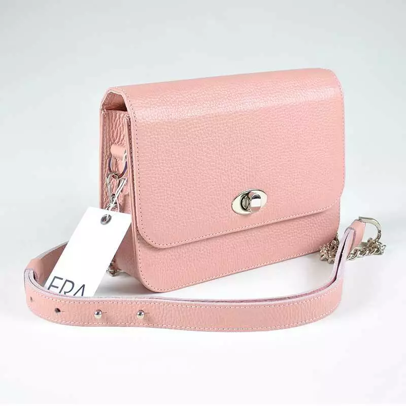 Шкіряна жіноча сумка через плече пошита з натуральної шкіри флотар рожевого кольору .