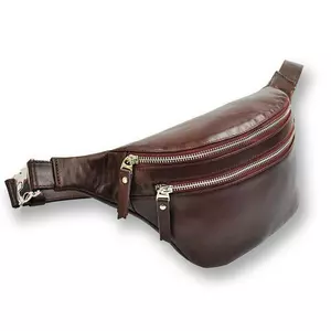 Шкіряна жіноча сумка на пояс пошита з натуральної шкіри наппа бордового кольору .