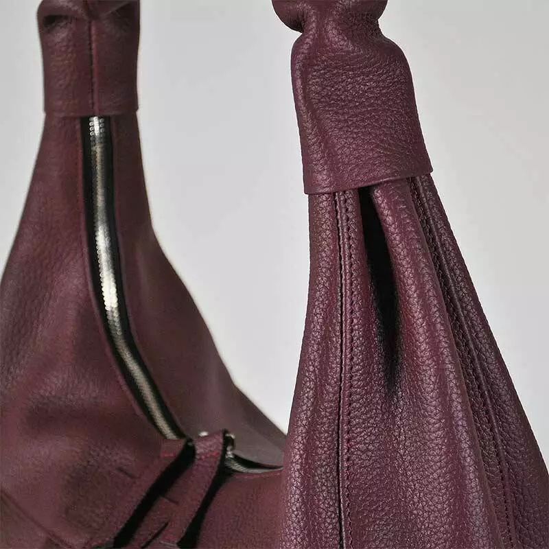 Сумка закривається на металеву застібку блискавка з двома бігунками та оснащені шкіряними пулерами.