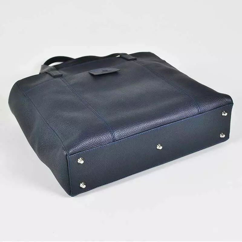 Жіноча сумка шоперу пошита з натуральної шкіри флотар темно-синього кольору.