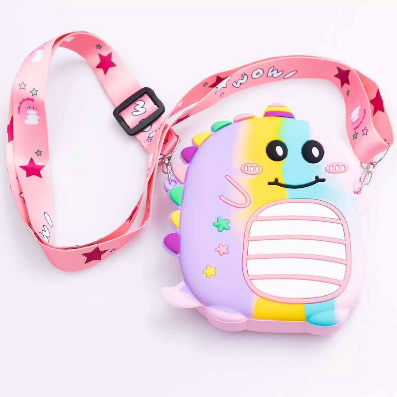 Главная > Каталог > Сумки > Кошельки > Сумочка-гаманець Динозавр силіконова на блискавці 12*11*3 см, райдужний оптом