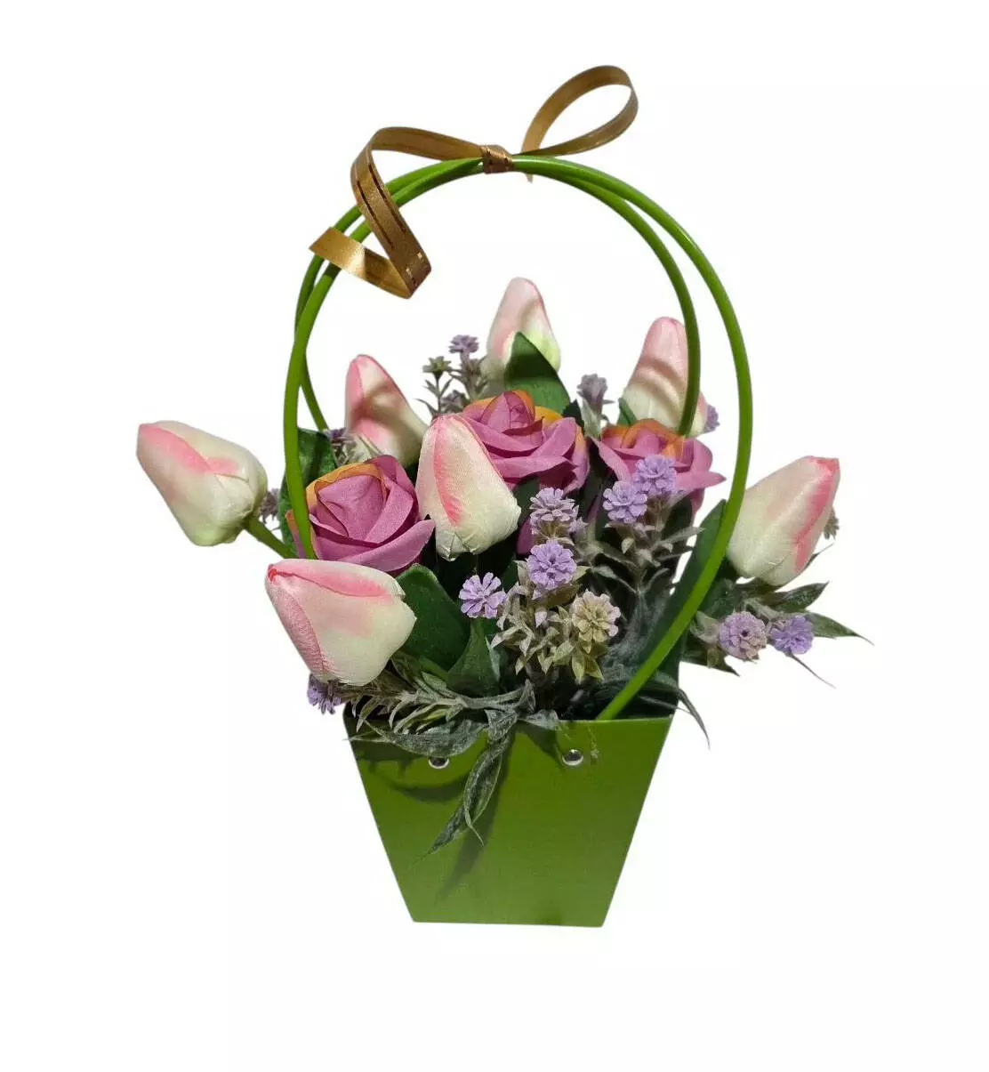 трояндами та кущ евкаліпту, сумочка зеленого кольору, розміром