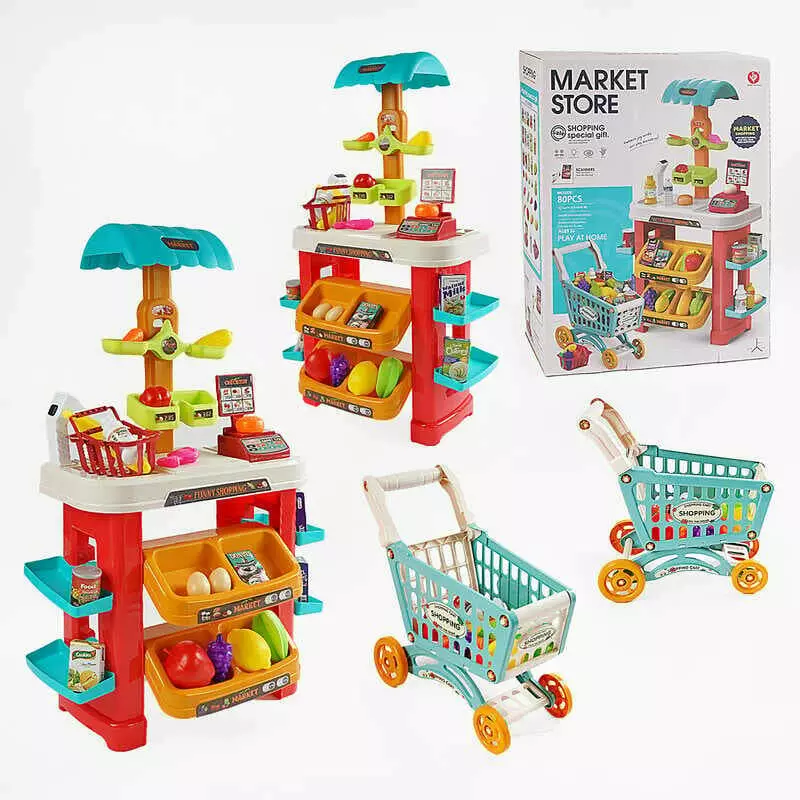 Супермаркет 922-194 (6) 80 елементів, звук, підсвічування, сканер, продукти, ваги, візок та корзина, на батарейках, в коробці