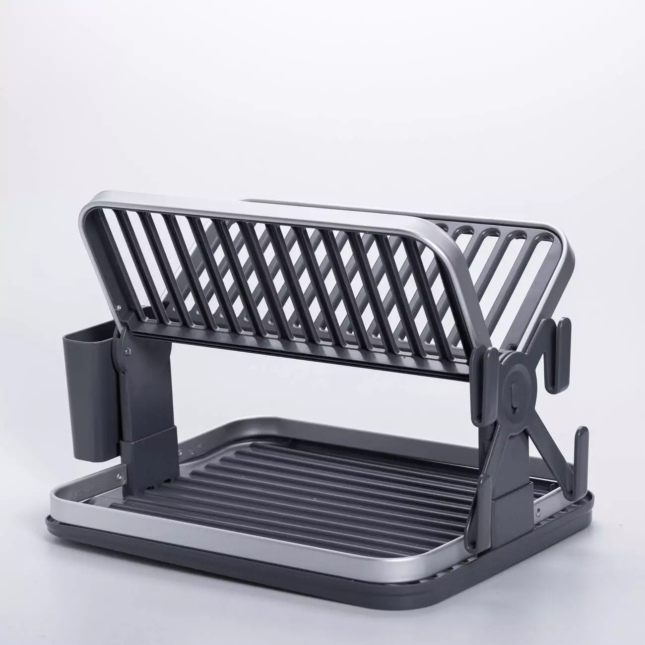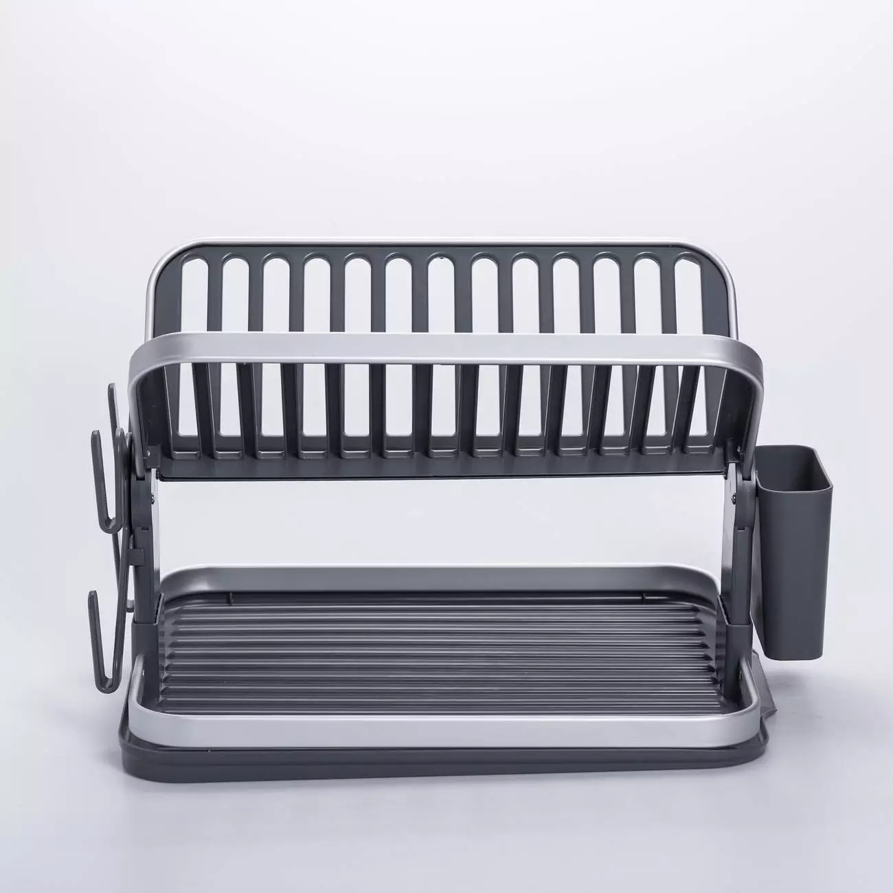 Ця компактна та практична сушарка поєднує в собі міцний алюміній та довговічний пластик. Верхній ярус складається, що дозволяє економити місце зберігання та адаптувати сушарку під різні обсяги посуду. Це ідеальний варіант для невеликої кухні, оренди чи заміського будинку – практично, акуратно та функціонально.