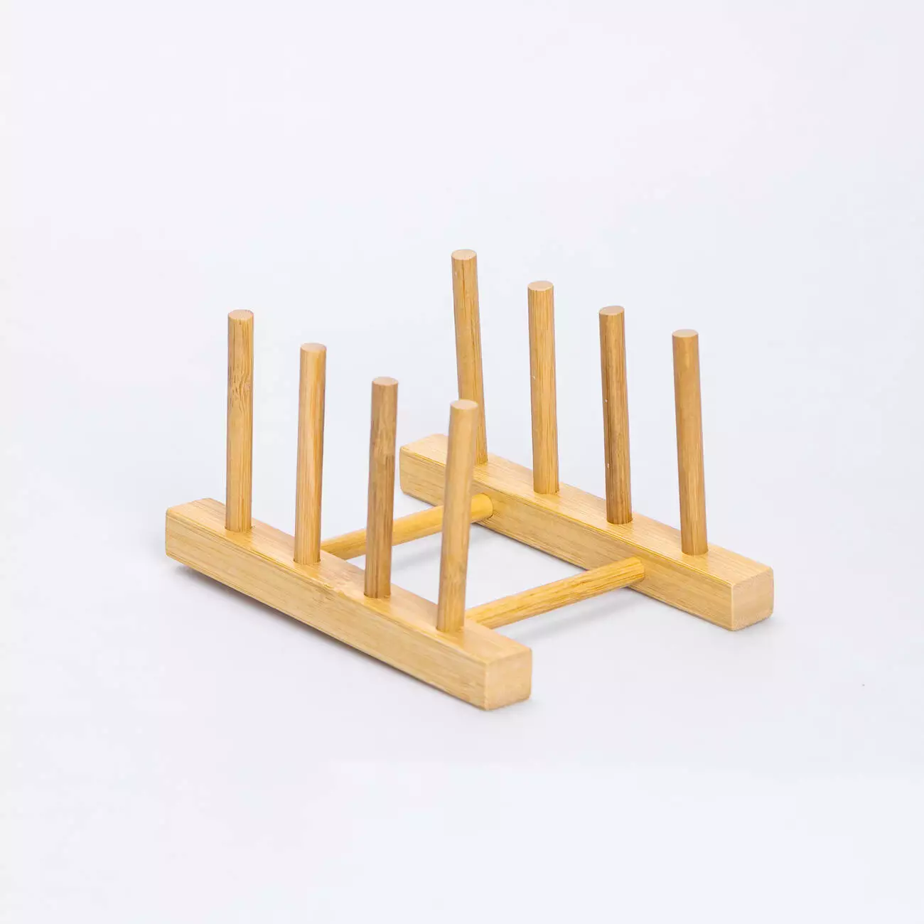 Підставка для тарілок з бамбука допоможе організувати простір на кухні, зберігаючи посуд у вертикальному положенні. Завдяки компактним розмірам вона не займає багато місця та підходить для розміщення на робочій поверхні чи в сушильній шафі. Конструкція складається з двох паралельних планок та рядів вертикальних стрижнів, між якими зручно ставити тарілки.