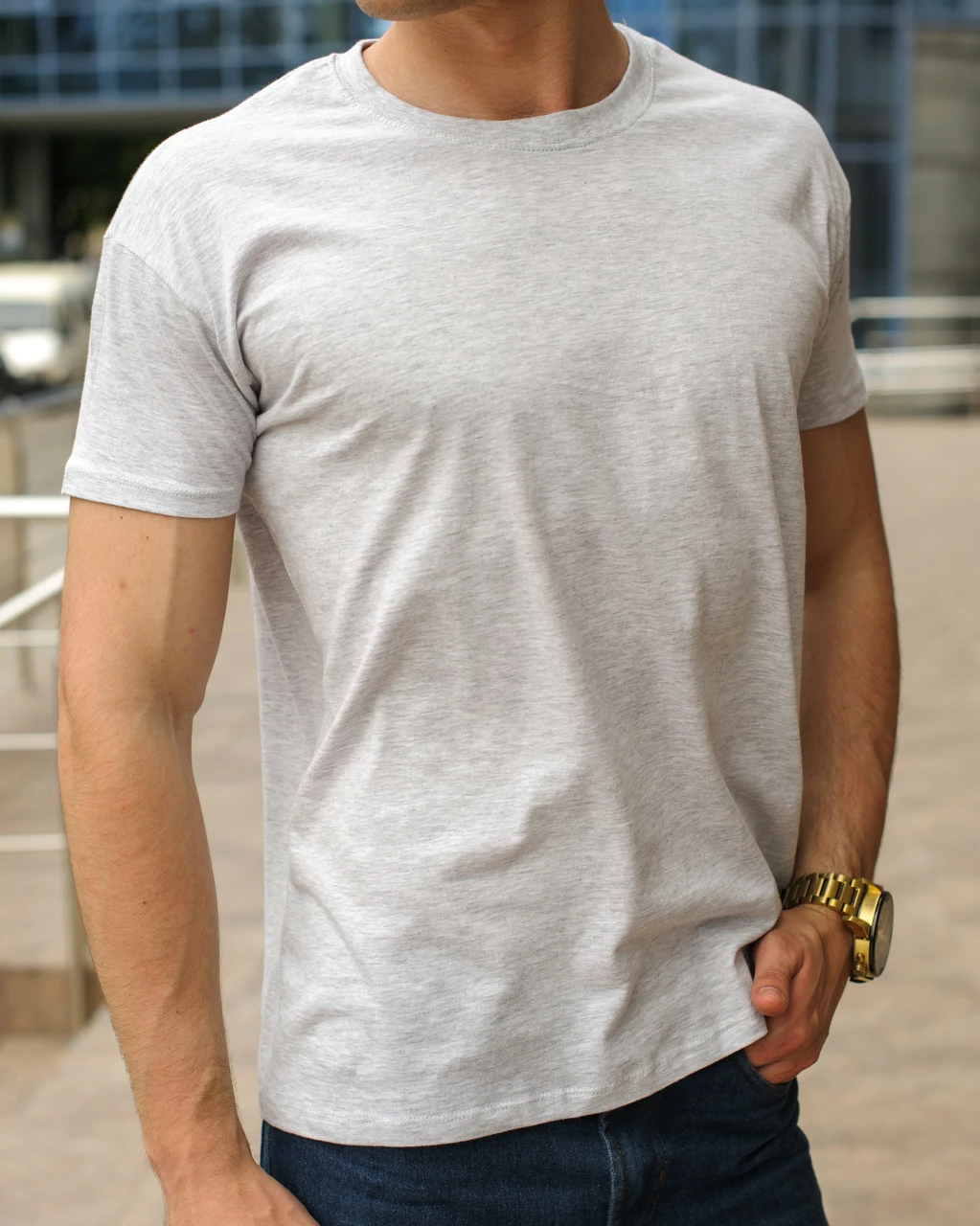 Светло-серая футболка (серый меланжевый цвет) / однотонные хлопковые футболки