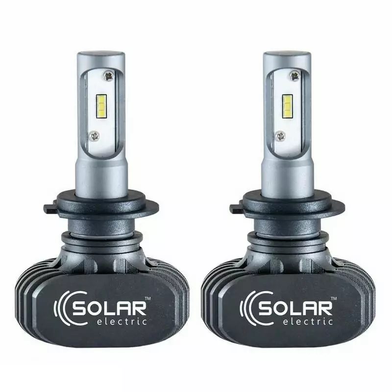 Это светодиодные лампы от бренда SOLAR, применяются для замены штатных галогенных ламп. По яркости света они сравнимы с ксеноном, но при этом конструкция более простая, с отсутствием источника пожароопасности. Установка достаточно проста, не требует навыков электрика, а размер соответствует стандартам посадочных мест в фаре.