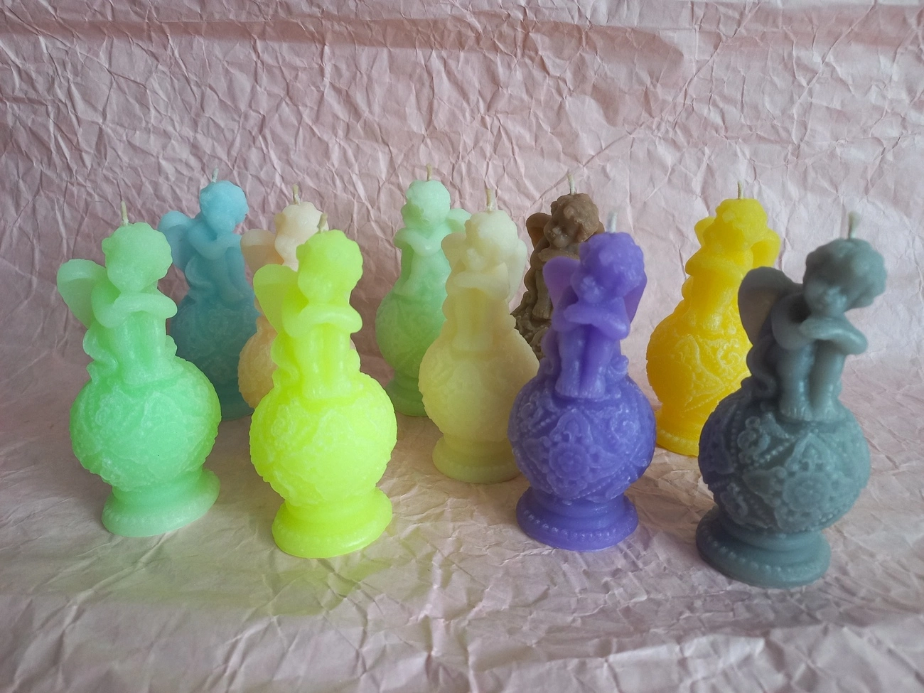 Свічки-янголятка. Колір, аромат - за бажанням. Виготовлені із харчового парафіну із стеарином. Горять без кіптяви