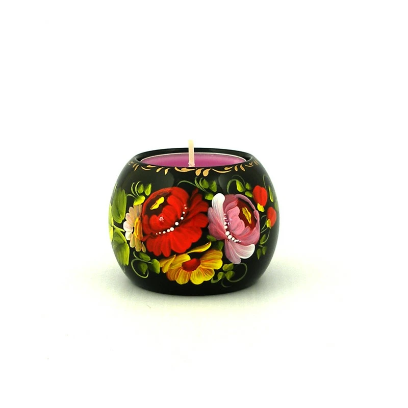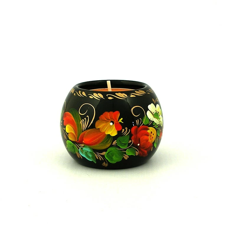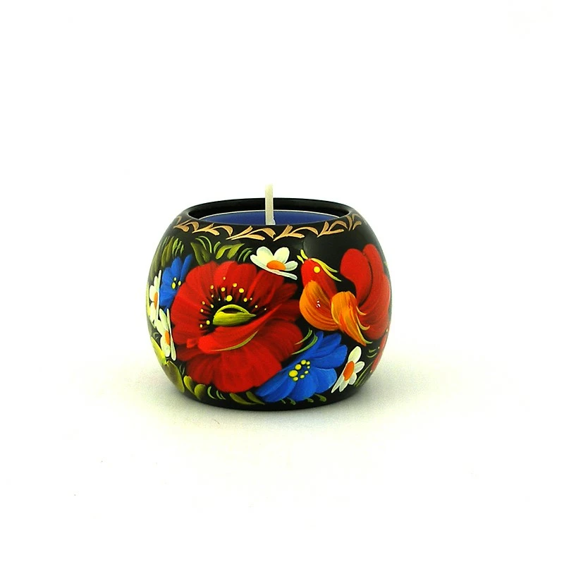 Свічник ручної роботи, розписаний в техніці "Київський розпис",