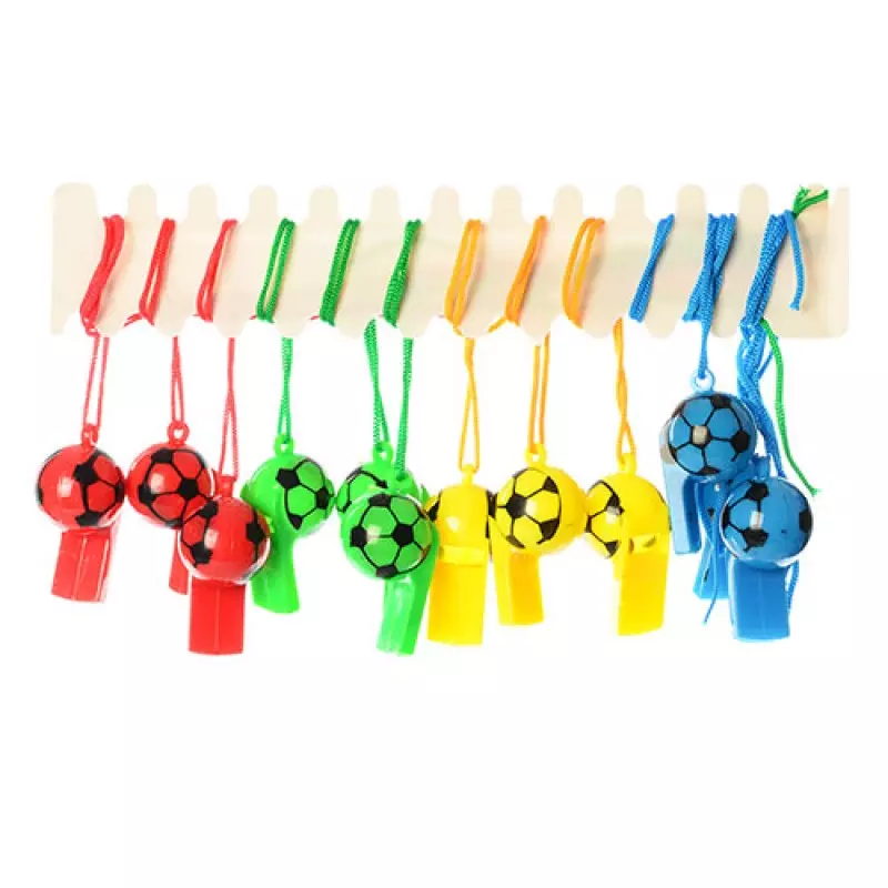 Фотография 1 товарной позиции интернет-магазина детских игрушек www.smarttoys.com.ua Свисток MS 0364-1 пластик, шнурок, 4 кольори, футбол, 5,5-3-3 см
