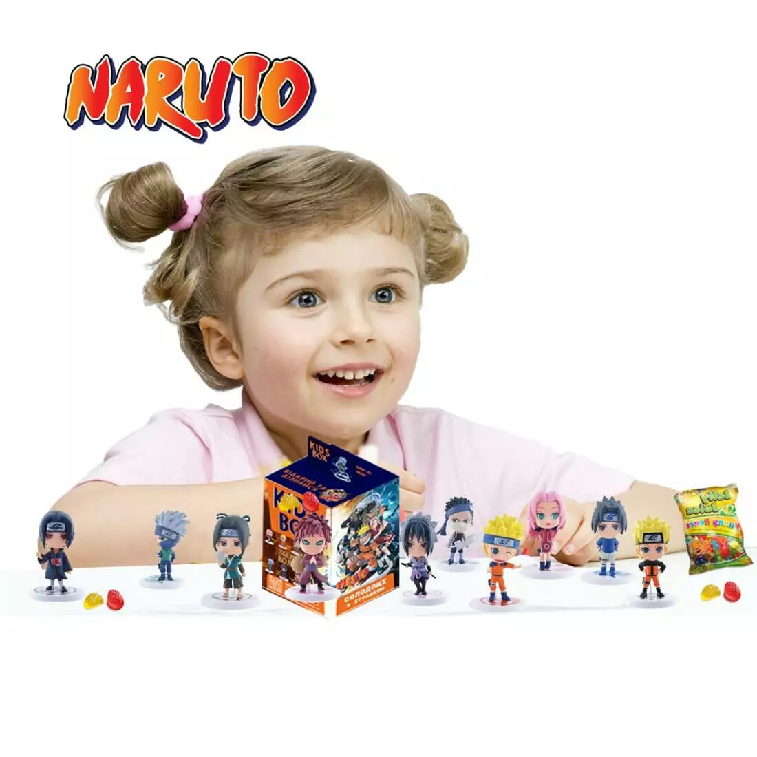 Картонная коробочка с игрушкой и мармеладом внутри.