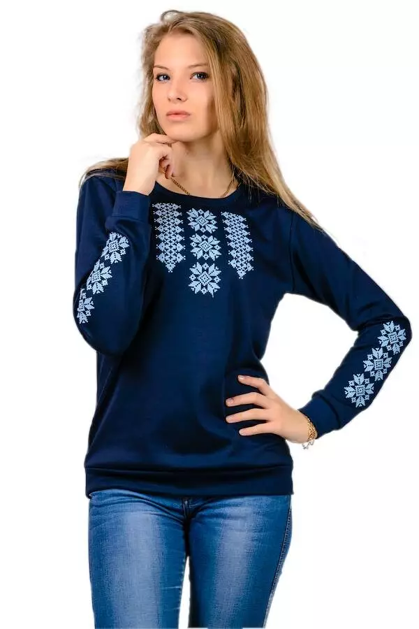 Трикотажний світшот-вишиванка прикрашений справжньою якісною машинною вишивкою хрестиком. Рукав - довгий на манжеті, низ світшота - на манжеті.