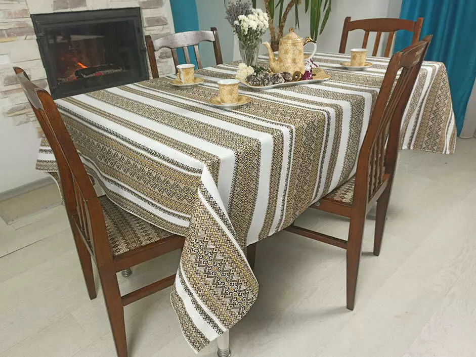 Святкова ткана скатертина з орнаментом + 6 серветок, 144х145 см