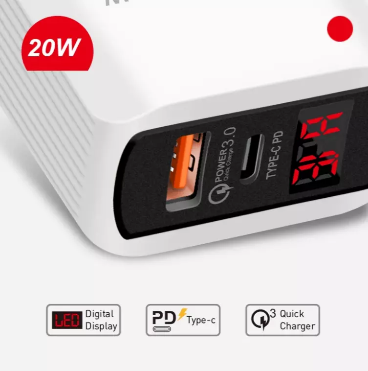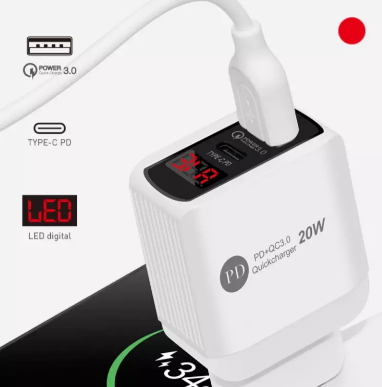 Компактное и мощное зарядное устройство PD PKG034, 2*USB, QC3.0, 25W, LED - это идеальное решение для зарядки вашего мобильного телефона и других цифровых устройств.