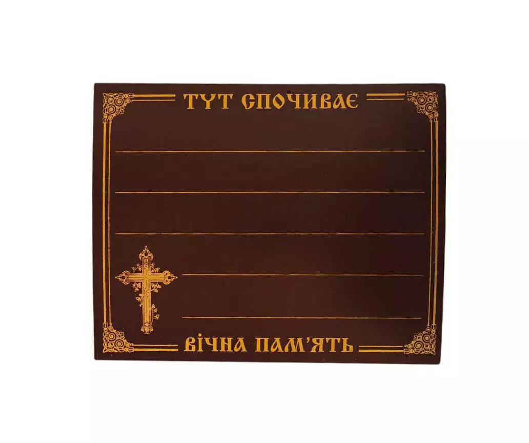 На табличці надруковано свічку та декоративні вензелі по кутах та