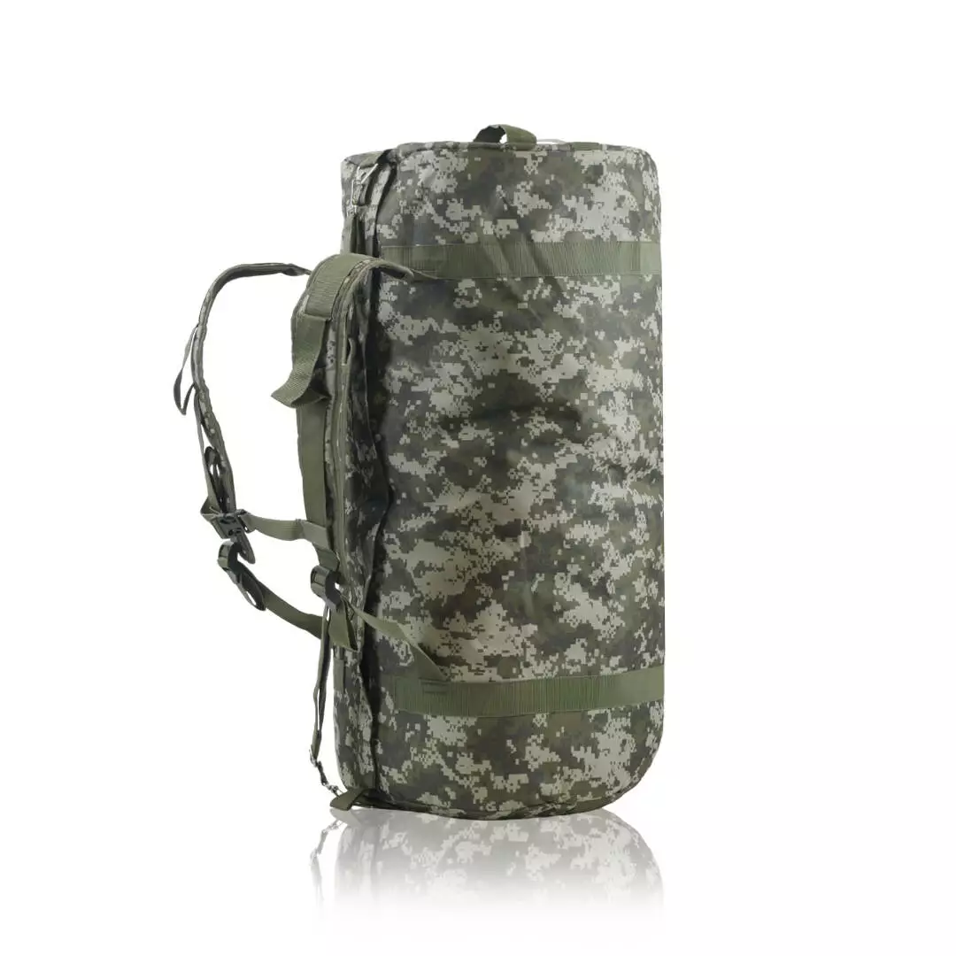 Сумка-баул предназначена для переноса личных вещей, военных, спортивных, туристических или охотничьих принадлежностей. Особенностью этой модели является то, что ее можно носить как сумку и рюкзак. Выполнена из прочной ткани пиксельной окраски.