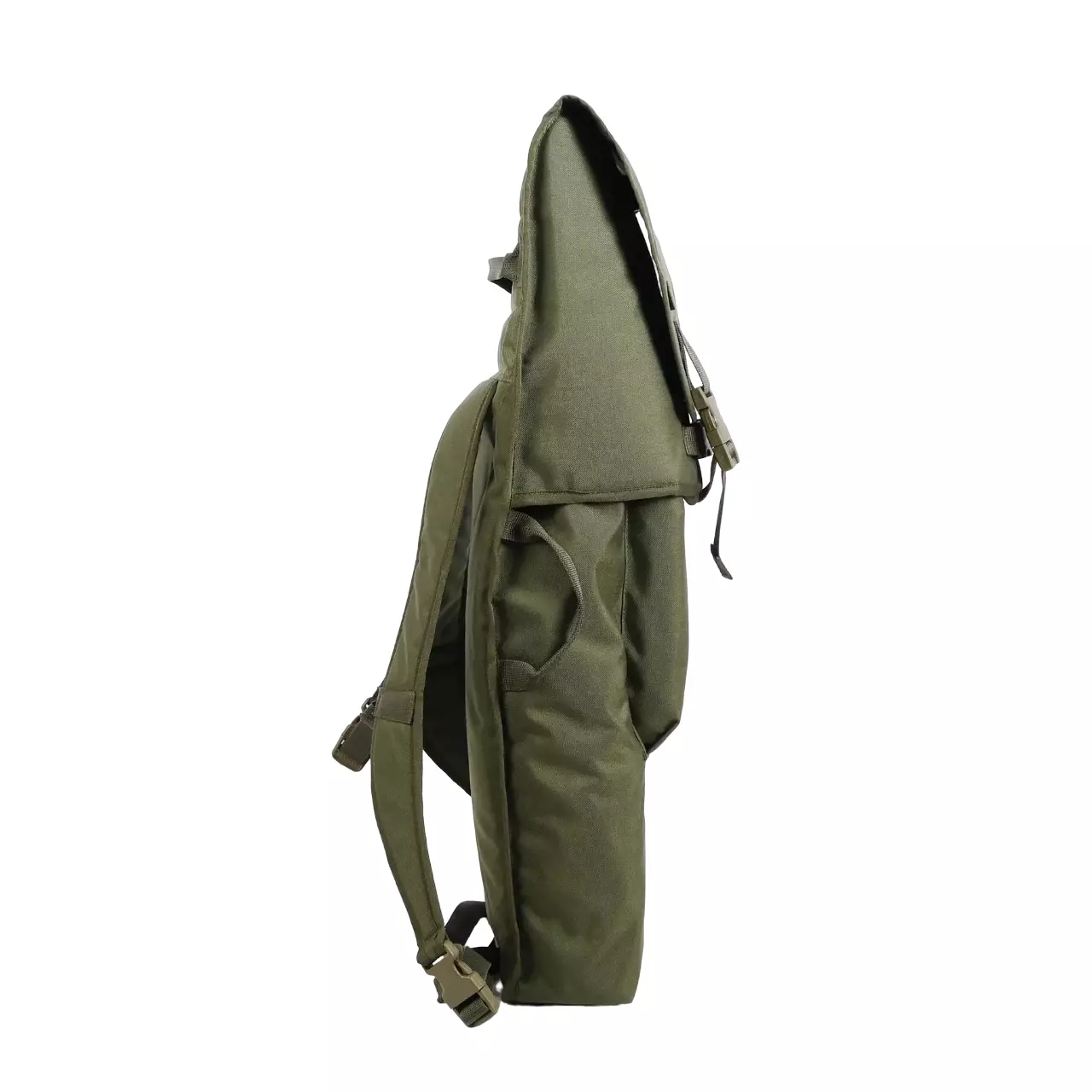 Рюкзак плотно закрывается тремя клапанами (два по бокам и один сверху) по принципу конверта, фиксируясь при этом фастексами.