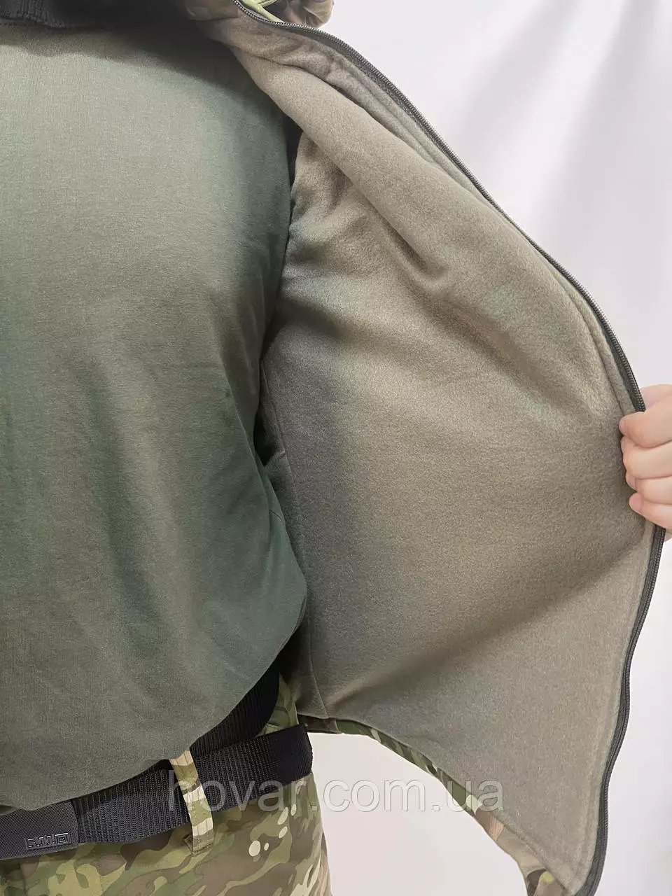 Військова куртка виготовлена із міцної водостійкої тканини SoftShell. Забезпечує хорошу терморегуляцію та захист від вітру і холоду за допомогою флісової підкладки.