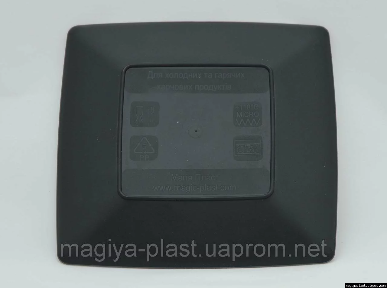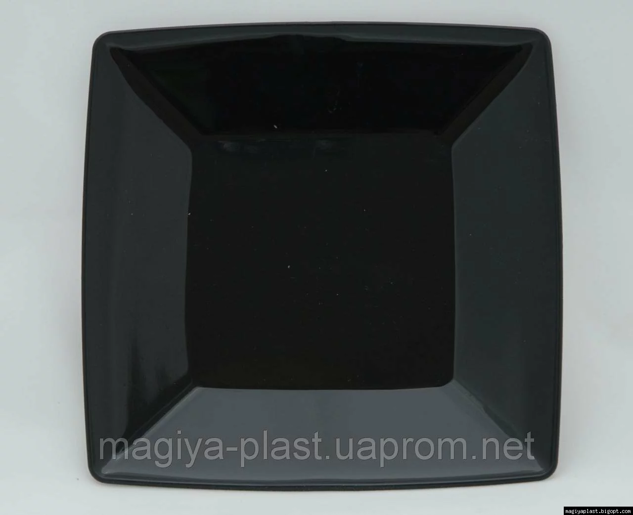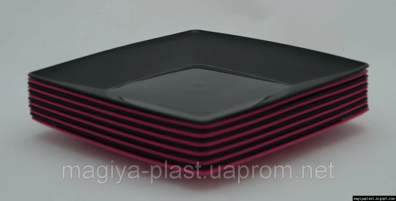 На дне пластмассовой квадратной закусочной (салатной) тарелки 18см