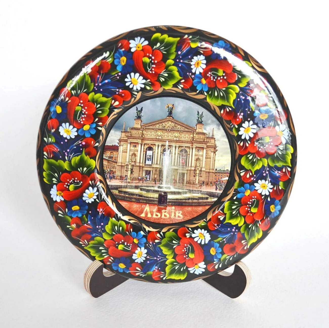 Тарілка Львів пам'ятка ручної роботи, розписана в техніці