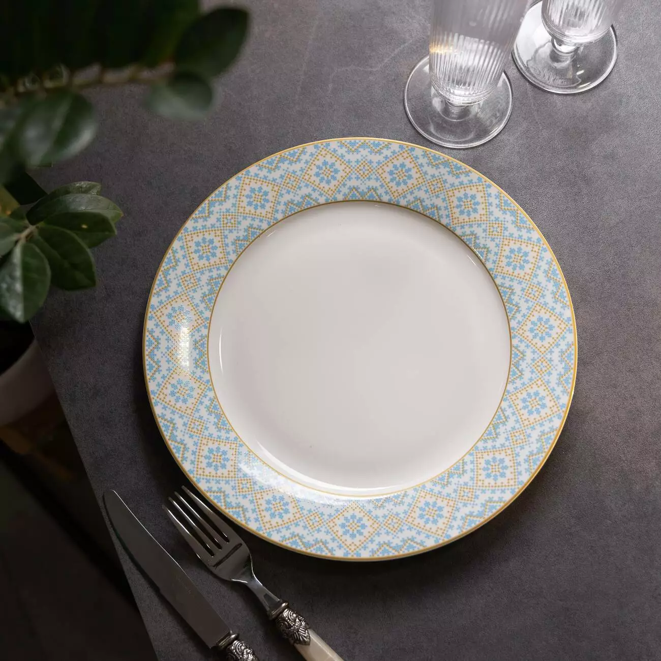 Елегантна порцелянова тарілка із етнічним орнаментом стане