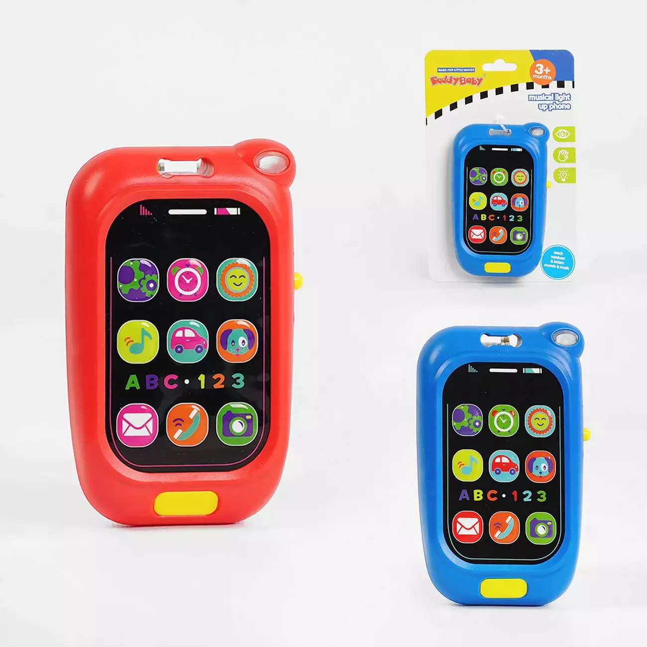 Кожен малюк мріє мати власний телефон. Іграшкова версія сучасного гаджету абсолютно безпечна для дітей. З ним не потрібно обмежувати час використання та хвилюватись стосовно впливу на здоров’я. Тож, це ідеальний подарунок для користувача-початківця. Іграшковий телефон має надійний пластиковий корпус яскравого кольору. Він не боїться падіння та з гідністю пройде всі іспити на міцність. Широкий дисплей іграшки містить 9 сенсорних кнопок. Як і в справжньому гаджеті, кожна кнопка відповідає за певну дію. Можна відправляти повідомлення, дзвонити, фотографувати та інше. Яку б дію малюк не обрав, телефон відповість звуковим та світловим ефектом. Особливості: - іграшка представлена у 2 кольорах; - виконана з міцного пластику, безпечного для дітей; - телефон має надійний корпус; - 9 сенсорних кнопок різної тематики; - ефекти працюють від 2 батарейок типу ААА, які входять до комплекту; - розміри іграшки: 7х2.5х12 см.