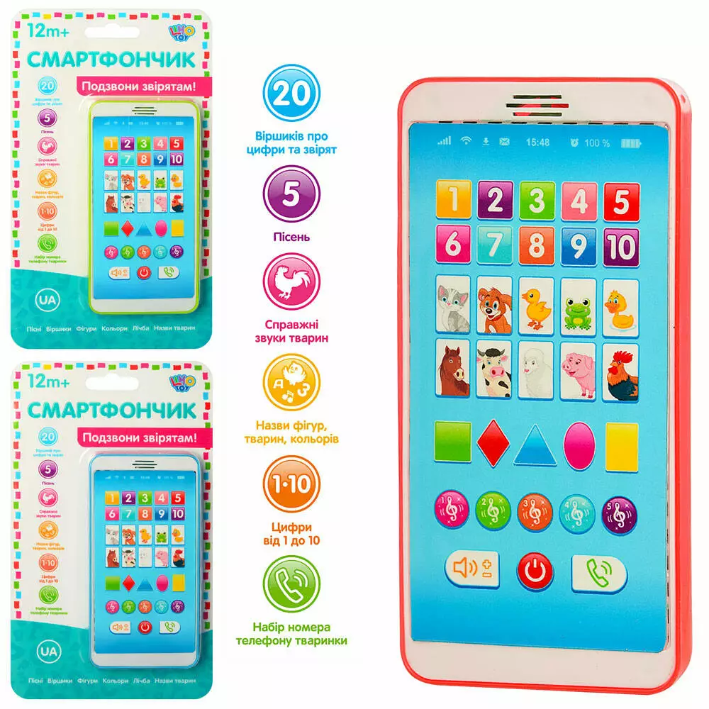 Фотография 1 товарной позиции интернет-магазина детских игрушек www.smarttoys.com.ua Телефон M 3675 Подзвони звірятам, навч., цифри, тварини, вірші, муз.(укр.),мікс кольорів, бат., лист