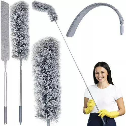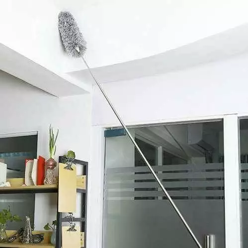 Скільки разів, змітаючи пил з меблів або підмітаючи стелю від упертої павутини, вам доводилося ледве підніматися сходами або небезпечно ходити меблями, щоб дістатися до запорошених місць? Відтепер ніякої непотрібної акробатики під час прибирання. За допомогою цієї ганчірки ви зможете дістатися практично до будь-якого цікавого для вас місця без особливих зусиль! Чим ця ганчірка відрізняється від інших пензлів? Річ у тім, що вона телескопічна і в один момент ми можемо перетворити звичайну мітлу на дуже довгу мітлу!