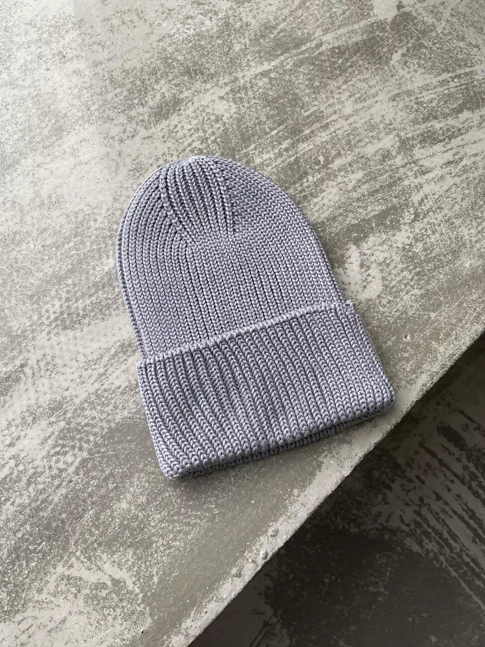 Тепла жіноча безшовна бавовняна шапка Fashion у рубчик сірого кольору