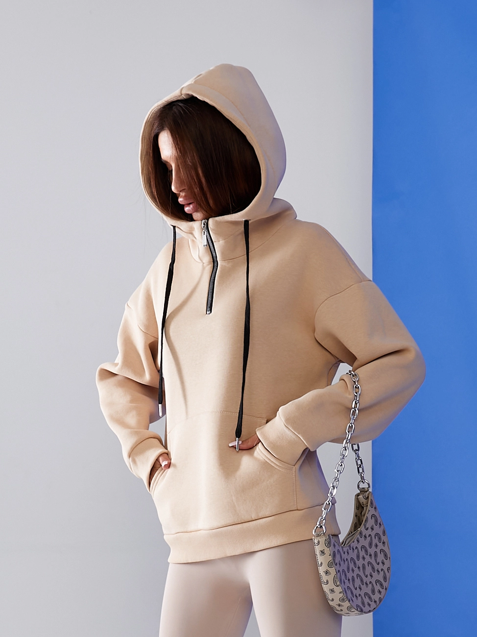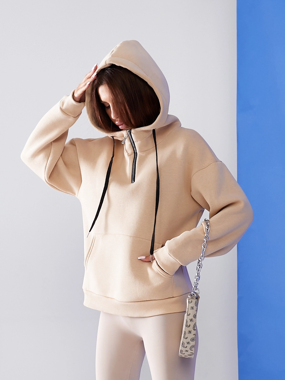 Худі жіноче утеплене бежевого кольору