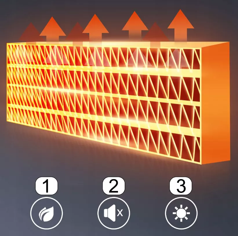 2. Перфорированная металлическая сетка спереди позволяет легко выпускать теплый воздух и быстро обогревать помещение.