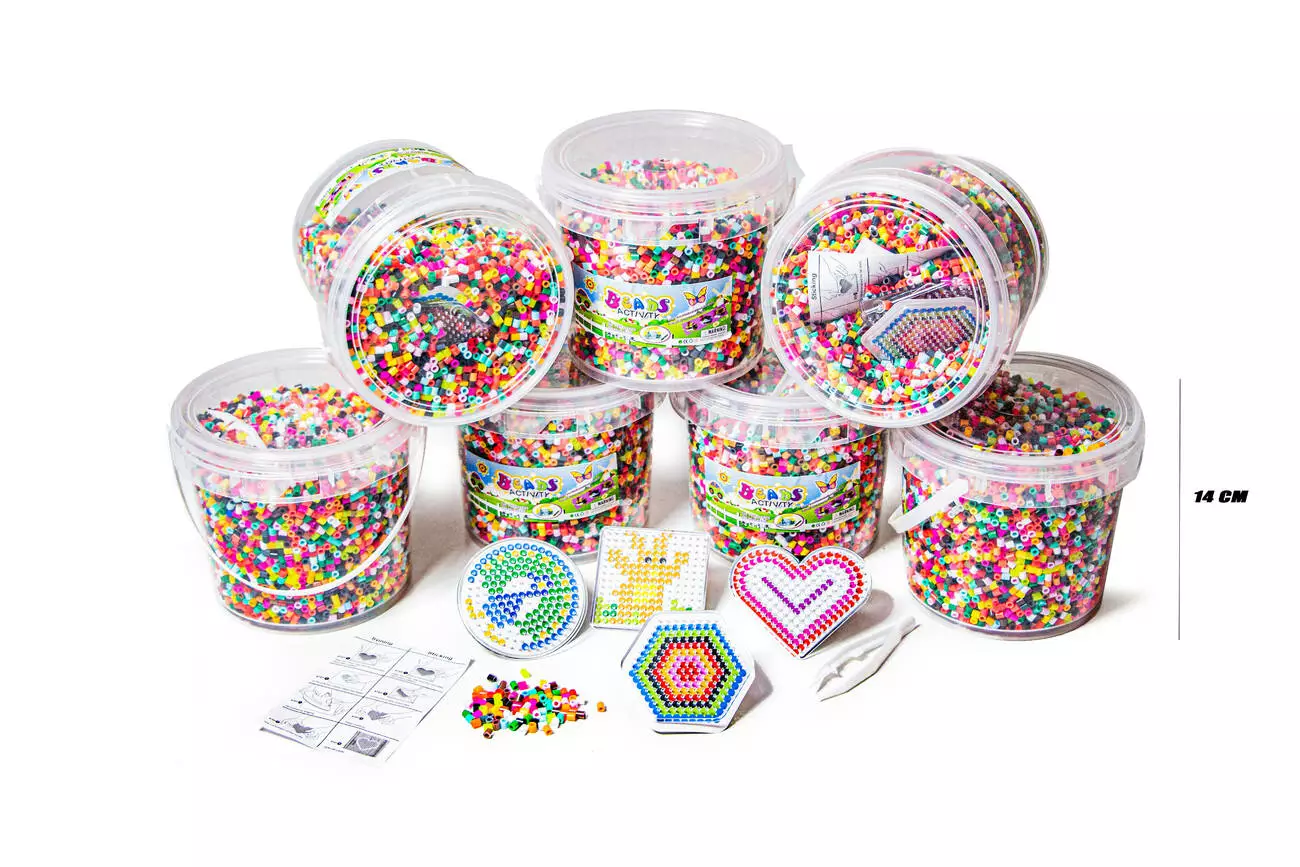 <p>Дайте волю своему творчеству и создавайте собственные красочные дизайны, расположив бусины на шаблонах. Закрепленными бусинами можно украсить комнату, сделать брелок, подвеску или создать картины.Набор развивает моторику и координацию ребенка. Ребенок может создавать из них разноцветных персонажей, транспортные средства или фигурки, и единственным ограничением является его фантазия.</p><br /> <p>В набор входит:</p><br /> <ul><br /> <li> Удобное ведерко с ручкой для переноски бусин и аксессуаров.</li><br /> <li> Бусины разных цветов.</li><br /> <li> Формы для укладки, являющихся готовыми узорами или устойчивыми лотками для создания других конструкций.</li><br /> <li> Пинцет для облегчения нанесения бисера на выкройки.</li><br /> </ul><br /> <p>Малыши могут использовать готовые формы и составлять на них красочные коллажи. Также можно создавать плоские элементы, а затем строить из них трехмерные работы. Бусины после укладки необходимо прогладить, для этого бумагу, которая отделит элементы от горячей поверхности утюга. На этом последнем этапе младшим детям понадобится помощь родителей или опекунов.</p><br /> <p>Представленный набор – предложение для детей, которые любят творить, также подойдет детям, которым необходимо развивать такие навыки, как: моторика, пространственное воображение, точность и творческие способности. Также игрушка помогает сосредоточиться и успокоиться.</p><br />
