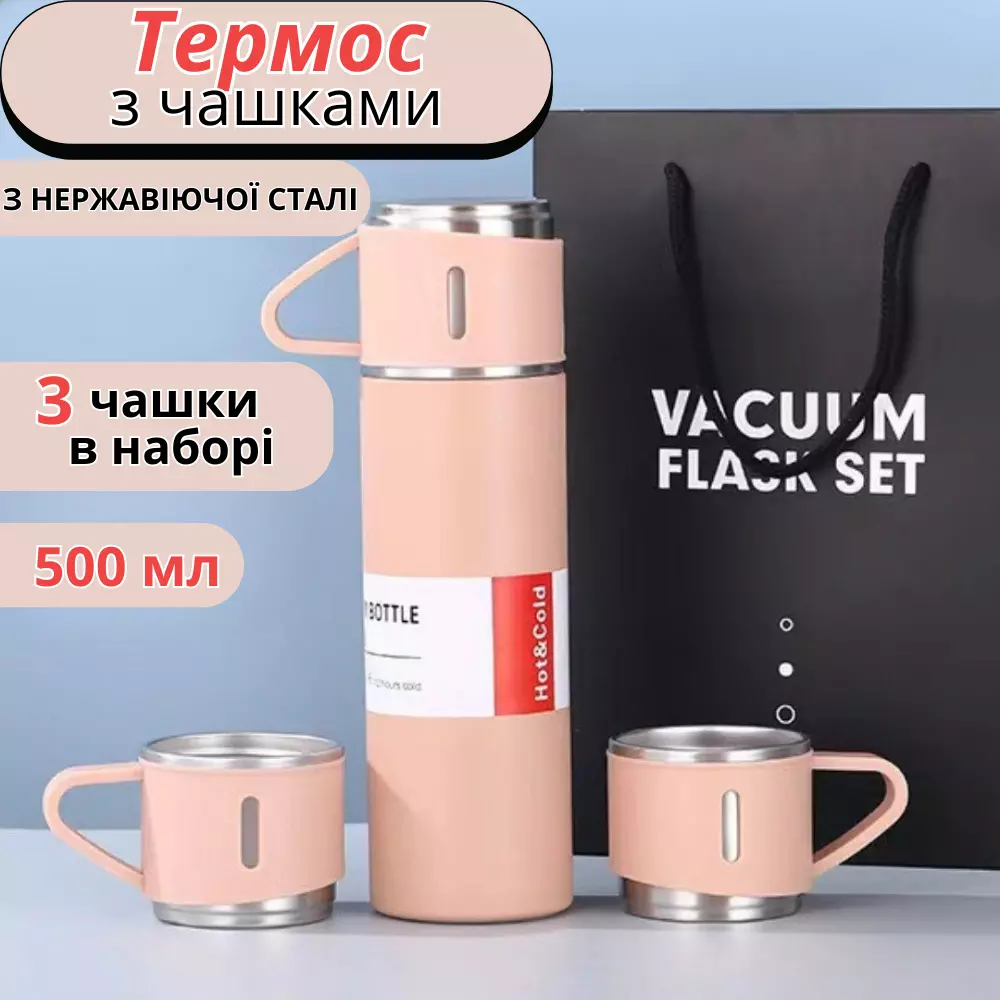 Подарочный набор: вакуумный термос 500 мл из нержавеющей стали с 3