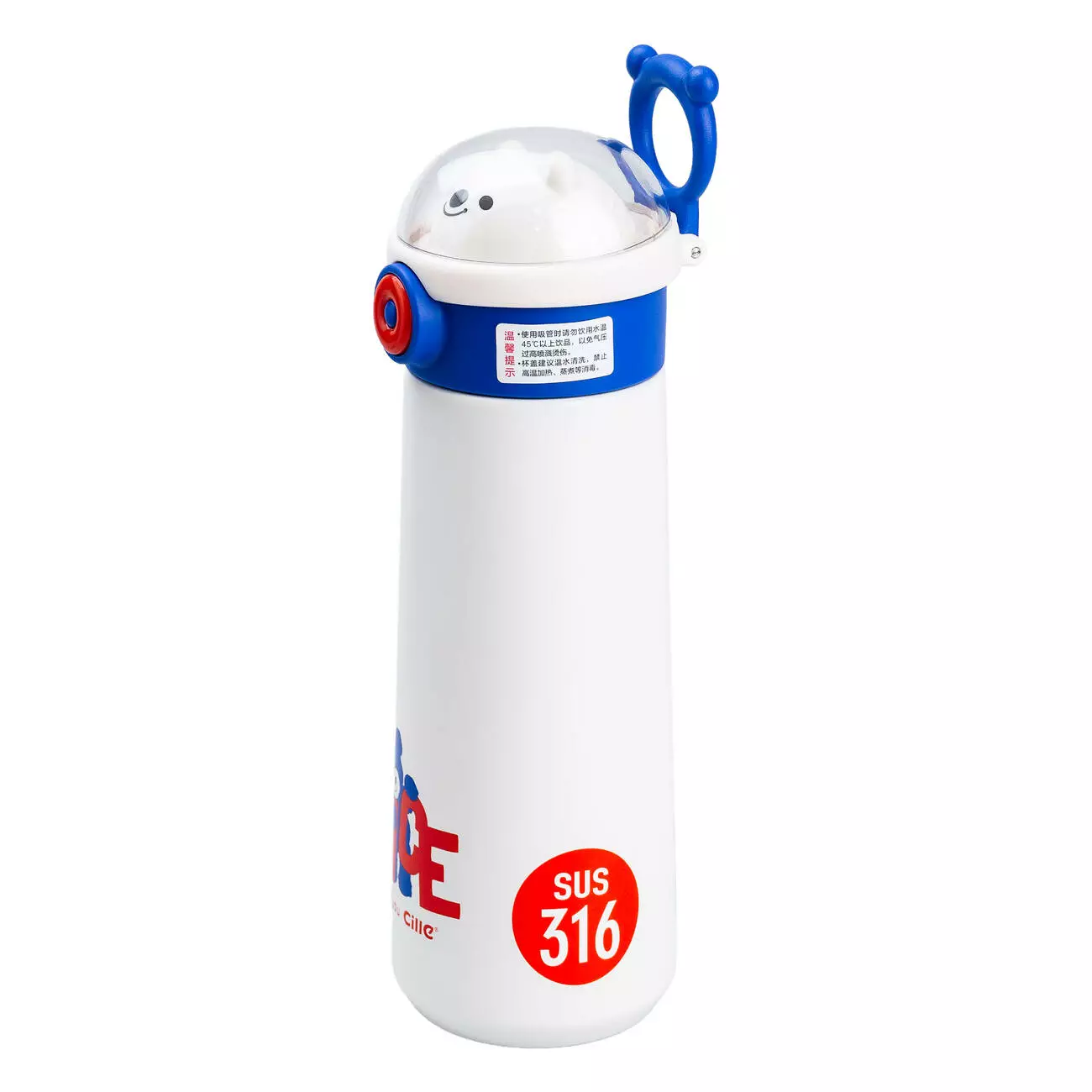 Термос оснащений зручною ручкою, яку легко тримати маленькими