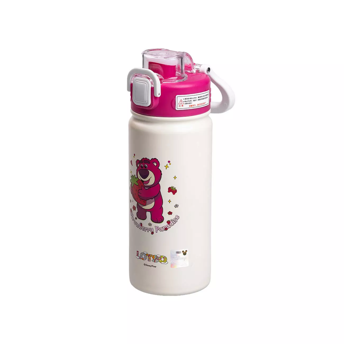 Дитячий термос із зображенням рожевого ведмедя Лотсо – не просто відмінне рішення для збереження температури напоїв, а й оригінальний подарунок для маленької любительки "Історії іграшок". Термос виготовлений із якісних матеріалів, має гвинтову кришку з відкидним верхом. Клямка з фіксатором надійно закриває зону для пиття від забруднень і випадкового відкривання, завдяки чому можна не турбуватися про те, що вміст ємності проллється і забруднить речі.