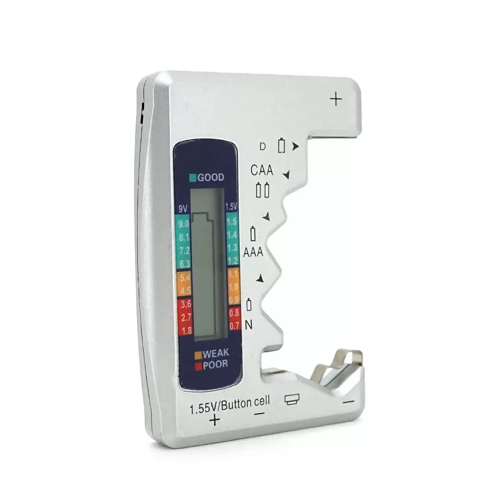 - Підходить для тестування акумуляторів типу AA, AAA, D, C та серії