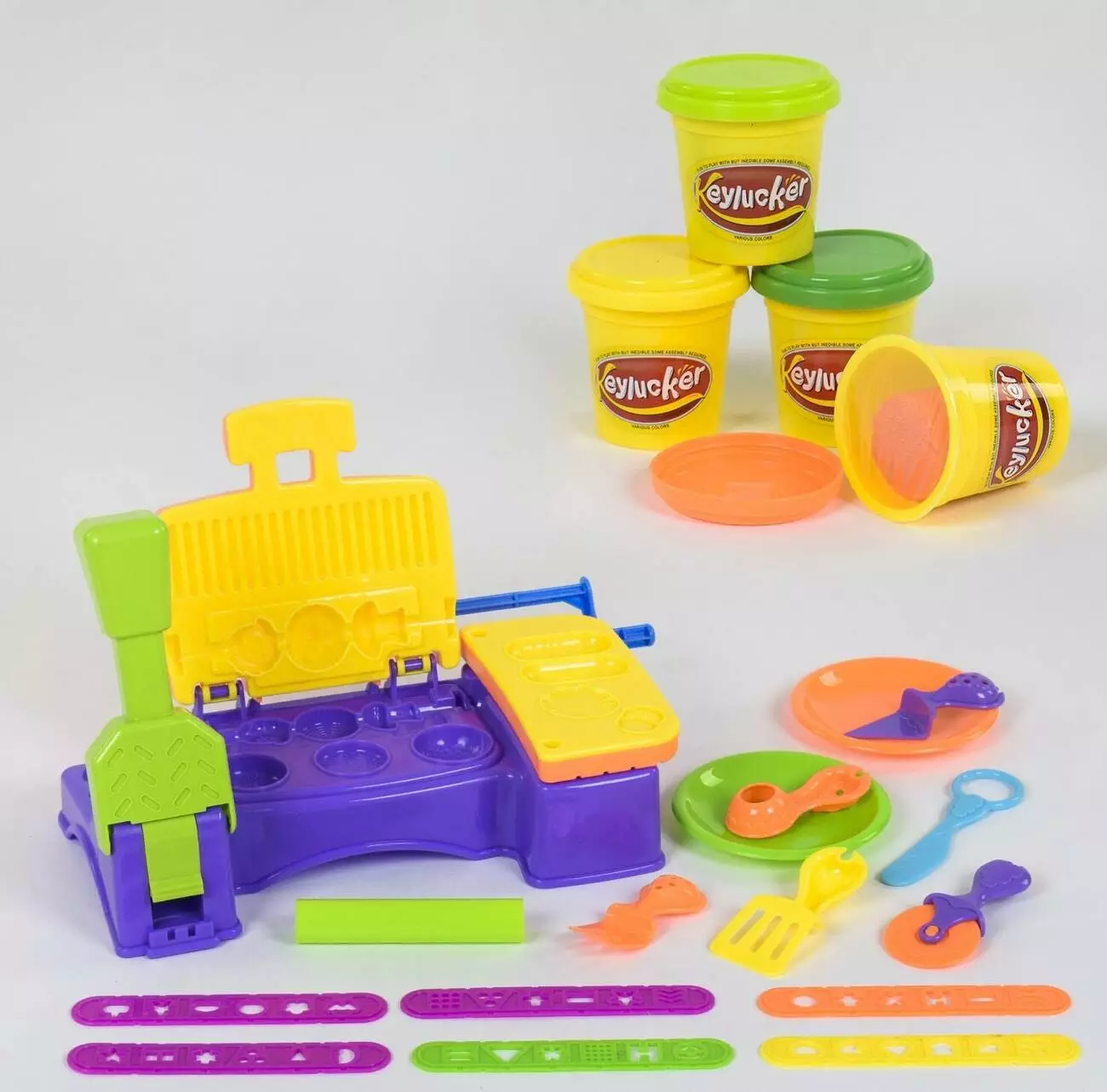 Тісто для ліплення - улюблена гра багатьох дітей у всьому світі. З появою класного матеріалу, який не липне до рук і не залишає незмивних плям на килимах і шпалерах, тісто для ліплення практично повністю витіснило звичайний пластилін. Набір тесту для ліплення КА 5016 являє собою захоплюючу гру, в процесі якої, дитина зможе влаштувати справжню барбекю вечірку, правда продукти не можна буде з'їсти. Величезна кількість формочок, посуду і ціла установка для приготування барбекю стануть відмінним варіантом для подарунка, як дівчинці, так і хлопчикові. Тісто чудово підійде для зовсім маленьких діток, як тренажера для розвитку дрібної моторики, адже нічого страшного не трапиться, якщо малюк, випадково проковтне невеликий шматочок. Крім того, тісто для ліплення відмінно підійде для занять в садку і уроків праці в школі. Скільки б не було років вашій дитині, тісто для ліплення завжди буде бажаним і корисним подарунком.