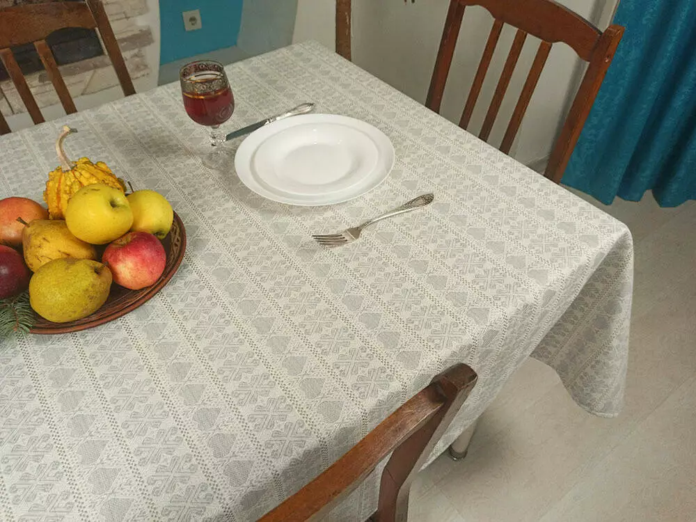 Ткана скатертина з сірим орнаментом 188х145 см, Скатертина