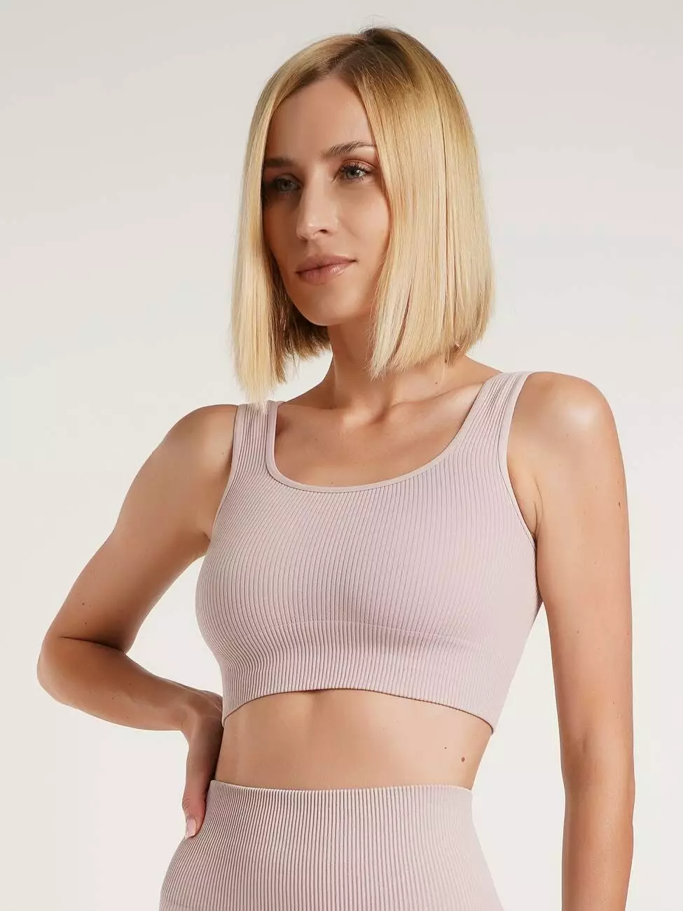 Безшовний топ у рубчик Giulia TOP RIB  — поєднання стилю, зручності та універсальності .  Цей топ з широкими бретелями створений, щоб забезпечити максимальний комфорт і свободу руху. Завдяки спеціальному матеріалу з мікрофібри, він м’який, зносостійкий та приємний на дотик. Широкі бретелі надійно підтримують груди, що робить цей топ ідеальним вибором для тренувань і щоденного носіння. Топ можна використовувати як зручну альтернативу класичній білизні, так і як стильний варіант спортивного одягу для активного відпочинку чи тренувань.