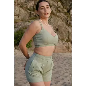 Топ зі зручними завʼязками допомагає регулювати потрібну посадку під різні обʼєми грудей.