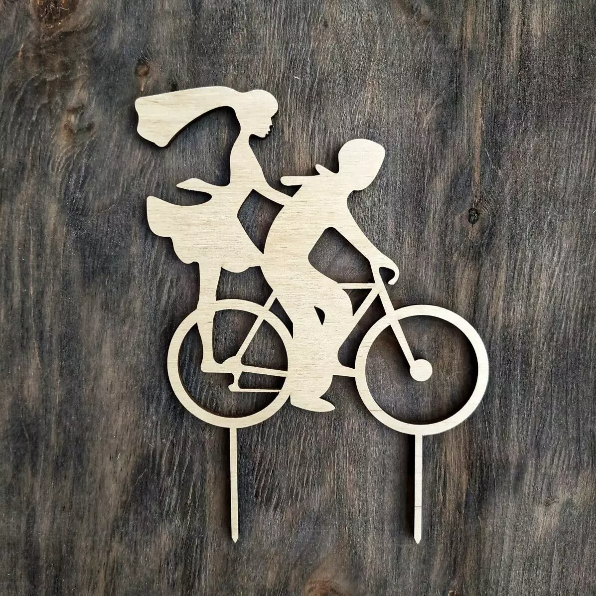 Деревянный топпер "Молодожёны на велосипеде"