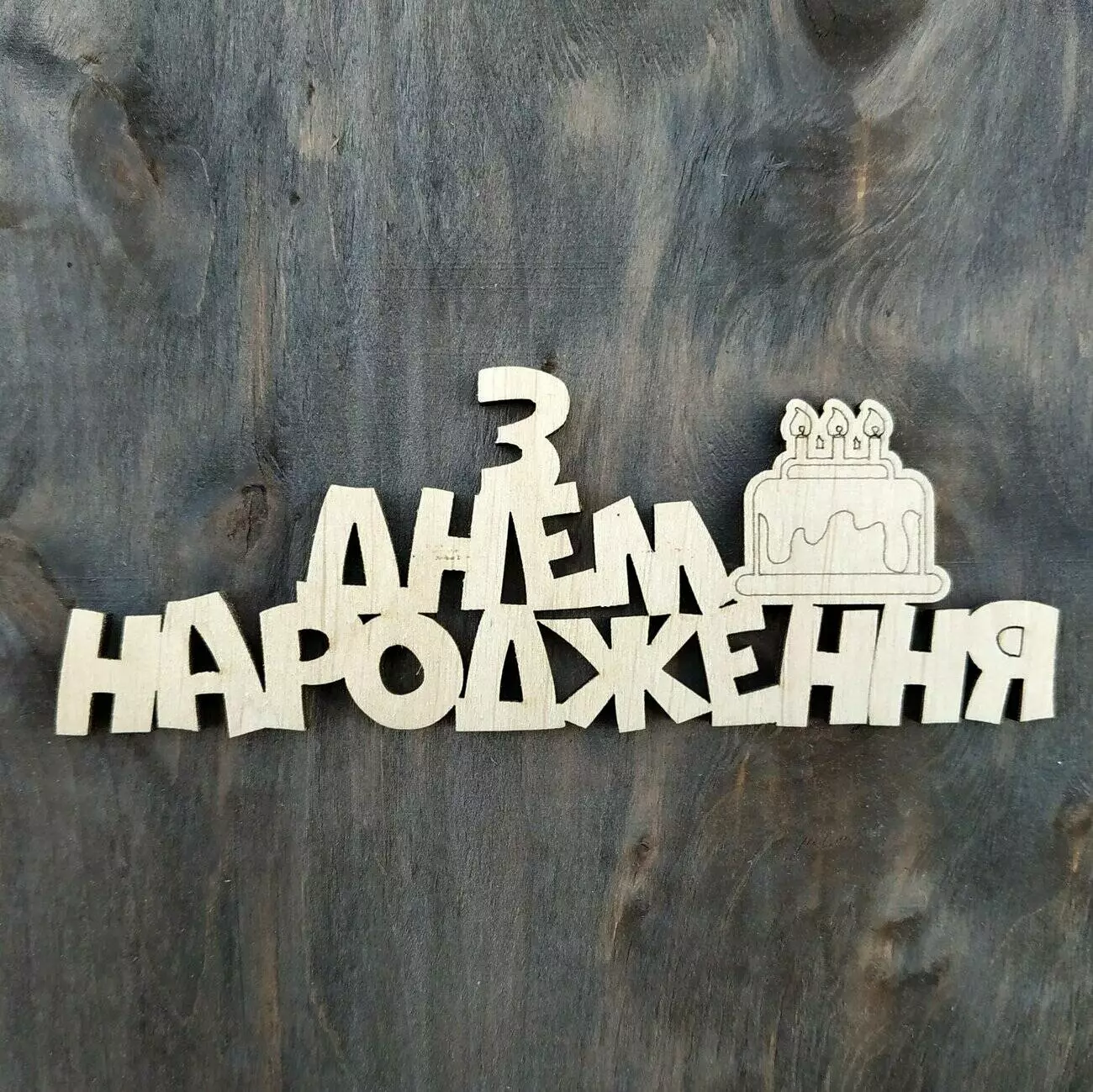 Деревянный топпер "З Днем народження" с тортиком